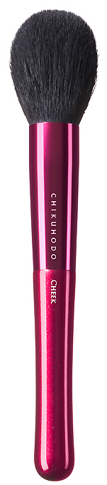 毛の密度を持たせた丸い穂先のチークブラシ。くるくると丸くチークを入れたいときに最適です。内側から滲み出るような綺麗なグラデーションを描くことができます。