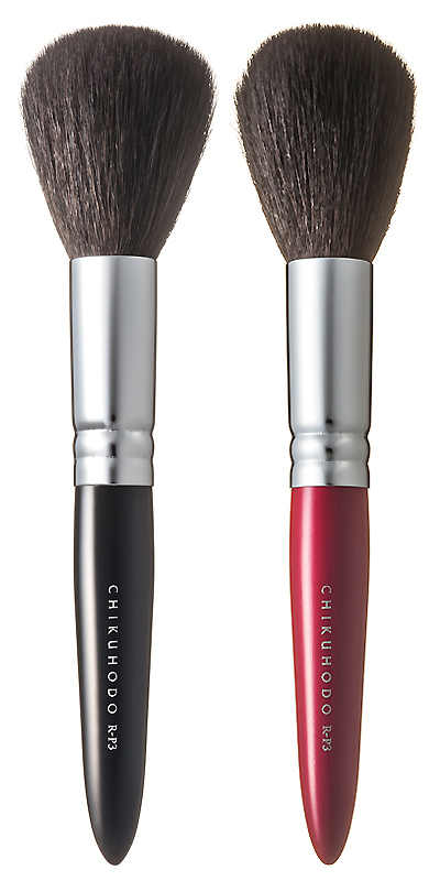 毛丈が長く、先に向かって広がった穂先のパウダーブラシ。軽い肌あたりで、ふんわりとお粉をのせることができます。