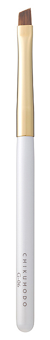 Eyebrow brush with an angled tip that can be used to draw delicate lines with a fine touch. The soft tips of the bristles can also be used as a shadow liner.