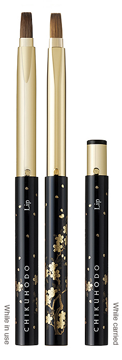 A lip brush with a gorgeous handle fully lacquered in the style of Ishikawa Prefecture's traditional craft Yamanaka lacquerware. The firm and smooth touch, unique to weasel hair, will allow you to paint your lips perfectly in one go. You can enjoy vivid colors with the slightly wide brush head.