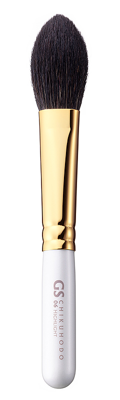 コシと優しい肌あたりを出すために灰リスと山羊をブレンドしたハイライトブラシ。