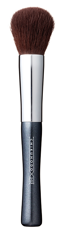 丸い穂先のチークブラシ。毛先を使いながらくるくると馴染ませることで発色よく、内側からにじみ出るようなグラデーションを作ることができます。