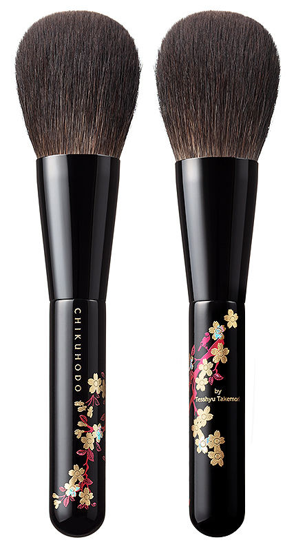 伝統工芸山中塗風の蒔絵を施した灰リス100%のパウダーブラシ。